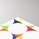 Las conexiones de color presentan círculos blancos, formados por esquinas coloridas, para formar un patrón único de aspecto de cuadrados y círculos conectados. Esta impresión de tela realzará la decoración de las habitaciones y será un buen comienzo para la conversación.