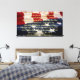 La superposición de esta escena convincente es una audaz representación de la bandera de los Estados Unidos, orgullosamente desplegada en el telón de fondo. Sus vibrantes colores rojo, blanco y azul sirven como un faro de esperanza y unidad, representando los ideales de libertad, justicia e independencia que guiaron a los estadounidenses a través de los años.