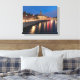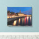 Fotografía nocturna de la ranura Christiansborg y partes de Børsbygningen. En la costa de Slotholmens Kanal. Copenhague, Dinamarca.