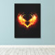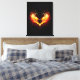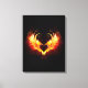 Ángel dispara el corazón con las alas flameantes sobre fondo negro.