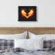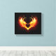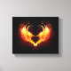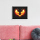 Ángel dispara el corazón con las alas flameantes sobre fondo negro.