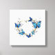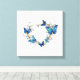 Corazón dorado, con flores morfo realistas azules y blancas. Morfo. Diseño con morfo de mariposas azules.