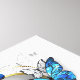 Corazón dorado, con flores morfo realistas azules y blancas. Morfo. Diseño con morfo de mariposas azules.