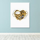 Corazón mecánico, volumétrico, de vapor punk con manómetro de presión, acero y engranajes dorados sobre fondo blanco. Estilo Steampunk.