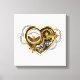 Corazón mecánico, volumétrico, de vapor punk con manómetro de presión, acero y engranajes dorados sobre fondo blanco. Estilo Steampunk.