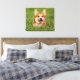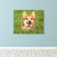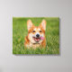 Este es un Corgi muy lindo jugando en la impresión de lienzo envuelto en hierba