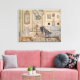 Esta imagen muestra una obra de arte del pintor sueco Carl Larsson (1853-1919), que fue miembro del movimiento Artes y Artesanías. La imagen muestra una elegante escena doméstica en una elegante sala de estar; un perro está durmiendo tranquilamente en la alfombra, junto a un sofá de rayas azules y blancas. La pintura original se terminó en 1894.