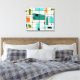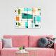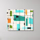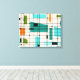 En esta Retro Grid y Starbursts Wrapped Canvas es donde el estilo vintage se encuentra con el día moderno. El fondo es de color crema, con kitsch, cuadrados y rectángulos fuera de kilómetros en verde azulado, turquesa, azul claro, naranja y verde aguacate. Los bloques de color caprichosos se ven superpuestos en algunas de las intersecciones de la cuadrícula. También hay rectángulos negros con líneas verticales y horizontales negras formando un patrón de cuadrícula. Diseños y cuadrados de estallido negro colocados esporádicamente a lo largo de este tapiz de color moderno de mediados de siglo. Agarra tus botas de go y fondo de timbre y disfruta de esto hasta los años 60.