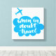 Cuando en duda viajan. Cita motivacional en fondo de nube azul con avión, tipografía de pincel para poster, camiseta o tarjeta. Arte de caligrafía vectorial. | Bigstock® - Todos los derechos reservados.
