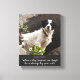 Cuando un perro se convierte en un Ángel, siempre está a tu lado. El lienzo de fotos conmemorativas del perro personalizado es un recuerdo conmovedor de tu mejor amigo. Añade tu propia foto y personalizar añadiendo el nombre de tu perro. El color de fondo y el color y estilo del texto se pueden cambiar para que coincidan con el estilo de la foto y la decoración.