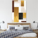 Composición geométrica de cubos dorados y marrones que se entrelazan perfectamente. El arte minimalista y elegante refleja riqueza y sofisticación, convirtiéndolo en una pieza de arte perfecta para ambientes modernos.