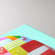 Perfecto para la decoración de los niños: un diseño bonito de un elefante repleto de patchwork en tonos arcoiris pastel contra un fondo azul cielo claro. Este animal es un diseño caprichoso, infantil y retro inspirado en juguetes de un popular elefante africano de Savannah.