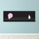 Papel de canvas de pichón quirky con dos pájaros divertidos en un cable atascado con varas de bóblgo masticado. Un pájaro soplando una gran burbuja rosa, otro pájaro pisando chicle. Editar para cambiar el fondo negro a cualquier color que desee. ♡ Idyllfire