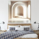 A serene architectural composition centered around a softly rounded alcove. Gentle light filters through the space, highlighting smooth surfaces, vertical structure lines, and the calm geometry of the curved seat. The muted palette and sculptural clarity create a warm, contemporary atmosphere — ideal for modern homes and refined workspaces.