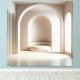 Eine ruhige architektonische Komposition mit einer sanft gerundeten Sitznische im Mittelpunkt. Weiches Licht betont die glatten Flächen, die vertikalen Strukturen und die klare Geometrie des Raumelements. Die gedämpfte Farbigkeit und die skulpturale Präsenz verleihen dem Motiv eine warme, zeitgemäße Atmosphäre — ideal für moderne Wohnräume und stilvolle Arbeitsumgebungen.