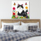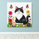 Lienzo Cute Black and White Cat, Flowers and Butterflies
