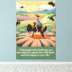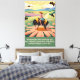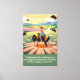 This charming “Bee Happy” motivational canvas print blends the warm nostalgia of 1930s–40s WPA National Park posters with a whimsical, storybook‑like scene. A cheerful young lady rides on the back of a giant bumblebee as it buzzes through a field of flowers, happily pollinating as it goes. The bold shapes, soft vintage colours, and classic WPA layout give the artwork that unmistakable retro‑travel‑poster feel, while the oversized bee and joyful expression of the rider add a cute, humorous twist.
