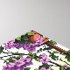 Hermoso arte mural relajante que representa un agradable día de verano. Un ilustracion bonito de una mujer sentada afuera en su patio relajante, con una taza de café caliente y su perro durmiendo a sus pies. Está rodeada de hermosas macetas y plantas colgantes de un Clematis morado de bonito.