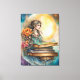 Lienzo Dama de estilo bohemio, luna, flores y libros