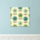 Un patrón moderno de mediados de siglo de flotación abstracta de flores de diente de león en un fondo amarillo.