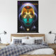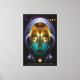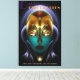 Daria Cyborg Queen es mi primera mujer fractal con aspecto humanoide. El retrato tiene una portada de libro de ciencia ficción retro o una mirada poster de cine con la reina en el centro, un título encima de ella y un pie de foto debajo de ella. La cara de Daria se compone de un cráneo metálico de cobre y una cara orgánica azul inferior que incluye una nariz de aspecto mecánico, ojos cibernéticos y el mecanismo de fijación del cráneo. En la parte superior de su cabeza se puede ver a través de la porción transparente de su actividad eléctrica en la cabeza que coincide con su cerebro cibernético avanzado. A los lados de su cara y alrededor de la parte de atrás de su cabeza hay un manto parcialmente metálico como ropa para darle la apariencia de un gobernante supremo; con una estrella con collar iluminado como acento. Luego, para el fondo, hay un gran fractal borroso para acentuar el retrato de su cara. Daria Cyborg Queen se compone de 169 capas, de las cuales 59 fractales se usaron para crear este retrato. Se utilizaron 30 fractales para crear ojos, clavijas oculares, cejas y pestañas; 1 fractal para los labios; 6 fractales para la nariz y la estructura de apoyo; 2 fractales para la cara; 7 fractales para el cráneo; 5 fractales para la ropa; 2 fractales para el collar; 1 fractal para el fondo; 5 fractales para acentos adicionales. Para crear los fractales usé el Generador Fractron 9000 y ensamblé los fractales y publiqué el proceso con el Editor de imágenes Photo Elements 7. Daria Cyborg Queen Canvas Print