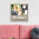 Añade tres de tus fotos bodas favoritas para crear una hermosa imagen de arte de collage única. Personalice el diseño con su monograma de nombre de familia y fecha de boda u otro texto personalizado. Haga clic en Personalizar para mover fotos o cambiar los tipos de letra y los colores del texto para crear un diseño único de tipo. El fondo tiene una textura falsa de burrega impresa a juego con cualquier decoración rústica neutra. ¡Un gran regalo para la familia y los amigos!