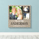 Añade tres de tus fotos bodas favoritas para crear una hermosa imagen de arte de collage única. Personalice el diseño con su monograma de nombre de familia y fecha de boda u otro texto personalizado. Haga clic en Personalizar para mover fotos o cambiar los tipos de letra y los colores del texto para crear un diseño único de tipo. El fondo tiene una textura falsa de burrega impresa a juego con cualquier decoración rústica neutra. ¡Un gran regalo para la familia y los amigos!