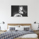 Fotografía en blanco y negro de una mariposa monarca colgada en una flor.
