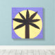 Una silueta de arte de papel palmetto frente a una luna llena sobre un lienzo envuelto.