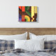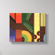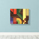 Arte de lienzo de perspectiva. La perspectiva es un diseño abstracto creado por Anna M. Asbury y consiste en formas multicolores sobre un fondo marrón.