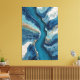 Rich navy and sapphire blues swirl into turquoise and aquamarine layers, accented by bubbling white foam, creamy alabaster edges, and delicate threads of shimmering metallic gold and copper. The glossy, high-contrast texture creates dramatic depth and fluid motion—evoking frozen ocean waves, underwater light shafts, polished geode stone, or elemental luxury captured in resin. Perfect for modern bedrooms, living rooms, home offices, spas, meditation spaces, coastal-themed bathrooms, or as sophisticated gifts for anyone drawn to calming yet opulent abstracts, wellness aesthetics, metallic shimmer, or high-end contemporary decor.