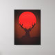 A powerful and minimalist nature-inspired wall art piece depicting a majestic deer in silhouette against a striking red sun. The vibrant gradient of the fiery sunset contrasted with the black silhouette of the stag's antlers creates a dramatic and symbolic composition that evokes strength, mystery, and solitude. Perfect for wilderness lovers, hunters, nature photographers, or those drawn to animal symbolism and calming yet intense visual art. Ideal for rustic interiors, man caves, meditation rooms, or modern minimalist décor. Printed on high-quality materials—canvas, metal, and framed prints. Also available on apparel and accessories.