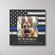 Honra a tu mejor compañera y mejor amiga con este Lienzo de Personalizado fotográfico de la policía de la Línea Azul delgada. Personalice la foto de su oficial de K9, su nombre, la fecha de fin de reloj . Cita: Nacido para el amor, entrenado para servir, leal hasta el final. DERECHOS RESERVADOS © 2020 Judy Burrows, Black Dog Art - Todos los derechos reservados. Impresión de lienzo en homenaje a perro de la policía K9 de delgada línea azul