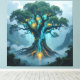 Inmitten nebelverhangener Berge steht ein majestätischer Baum, der Vergangenheit und Zukunft vereint. Seine uralten Äste tragen leuchtende Energieknoten, während leuchtende Schaltkreislinien seinen Stamm durchziehen. Ein Symbol für die Verbindung von Natur und Technologie – der digitale Lebensbaum.