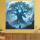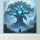 Inmitten eines mystischen Tals erhebt sich ein uralter Baum, verwoben mit dem Körper eines riesigen Drachen. Seine Äste tragen sattes Grün, während der Drache über das Land wacht. Eine einsame Gestalt nähert sich ehrfürchtig – auf der Suche nach Wissen oder Mut?