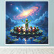 Der Froschkönig steht stolz als Dirigent vor seinem Orchester aus Frosch-Schülern. Mit präzisen Bewegungen und großer Leidenschaft führt er die musikalische Aufführung, die sein ganzes Volk begeistert.