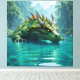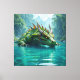 Ein uralter, mit Moos bewachsener Drache ruht friedlich im kristallklaren Wasser eines Bergsees. Seine Schuppen glänzen grün wie Smaragde, während geheimnisvolle Runen seinen Rücken zieren. Umgeben von majestätischen Alpen und dichter Tannenlandschaft, scheint dieses mythische Wesen über das Tal zu wachen – mächtig, weise und unantastbar.