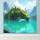 Ein uralter, mit Moos bewachsener Drache ruht friedlich im kristallklaren Wasser eines Bergsees. Seine Schuppen glänzen grün wie Smaragde, während geheimnisvolle Runen seinen Rücken zieren. Umgeben von majestätischen Alpen und dichter Tannenlandschaft, scheint dieses mythische Wesen über das Tal zu wachen – mächtig, weise und unantastbar.