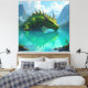 Ein uralter, mit Moos bewachsener Drache ruht friedlich im kristallklaren Wasser eines Bergsees. Seine Schuppen glänzen grün wie Smaragde, während geheimnisvolle Runen seinen Rücken zieren. Umgeben von majestätischen Alpen und dichter Tannenlandschaft, scheint dieses mythische Wesen über das Tal zu wachen – mächtig, weise und unantastbar.
