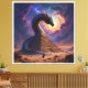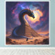 Ein mächtiger Drache windet sich schützend um eine uralte Pyramide inmitten der Wüste. Er ist der Torwächter – ein mystisches Wesen, das das Geheimnis dieser alten Stätte bewahrt. Die untergehende Sonne taucht die Szene in ein magisches Licht, während ein Wanderer dem Drachen gegenübersteht.