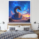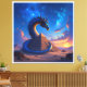 Ein mächtiger Drache windet sich schützend um eine uralte Pyramide inmitten der Wüste. Er ist der Torwächter – ein mystisches Wesen, das das Geheimnis dieser alten Stätte bewahrt. Die untergehende Sonne taucht die Szene in ein magisches Licht, während ein Wanderer dem Drachen gegenübersteht.