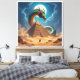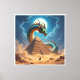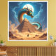 Ein mächtiger Drache windet sich schützend um eine uralte Pyramide inmitten der Wüste. Er ist der Torwächter – ein mystisches Wesen, das das Geheimnis dieser alten Stätte bewahrt. Die untergehende Sonne taucht die Szene in ein magisches Licht, während ein Wanderer dem Drachen gegenübersteht.