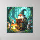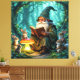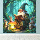 Ein weiser Waldgnom liest bei magischem Glühlicht aus einem alten Buch vor, während neugierige Kaninchen ihm lauschen. Umgeben von leuchtenden Pilzen und funkelnden Lichtfunken entfaltet sich inmitten eines mystischen Waldes eine märchenhafte Szene voller Magie und Geborgenheit.