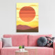 Lienzo en un desierto retro, minimalista, atardecer sobre colinas, en tonos rojizos naranjas, dorados amarillos y marrones