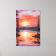 Una puesta de sol impresionante refleja un lago tranquilo, rodeado de pinos de silueta y cielos pintados en tonos feroces de naranja, rosa y lavanda. Esta cautivadora obra de arte combina la calma con la intensidad, convirtiéndolo en una declaración perfecta para los amantes de la naturaleza y los soñadores serenos por igual.