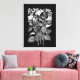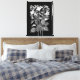 Impresión de lienzo basada en un dibujo medieval vintage de flores italianas de Hibiscus en una tiza y carbón vegetal de color gris plateado y grafito, con fondo negro