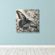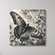 Mariposa blanca y negra con ramas de árbol y hojas dibujando.