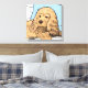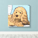 Aquí hay un lindo lienzo envuelto para cualquiera que ame las espeleolas, particularmente las espátulas de coqueteo. Presenta un ilustracion de un espátula de cocker marrón claro inclinado contra una almohada azul. Una decoración divertida para la habitación de un niño.