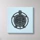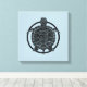 Dibujo de una tortuga de mapa en un círculo. El color de fondo se muestra a través del espacio blanco de diseño. Inspirado por la escultura artística metalizado. Negro sobre fondo azul.