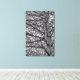 Disfruta de esta huella de lienzo de "Direction of Pine Trees". Vistas a las numerosas ramas de un pinar. Tomada en blanco y negro.